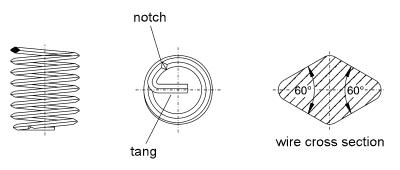 在未安裝的狀態(tài)下, 鋼絲螺套的外徑大于已攻絲的內(nèi)螺紋孔直徑。裝配時使鋼絲螺套經(jīng)過安裝扳手螺紋引導(dǎo)圈受扭力從而使其直徑變小,旋入預(yù)先用鋼絲螺套專用絲錐攻好的內(nèi)螺孔中,裝好以后,鋼絲螺套產(chǎn)生類似彈性膨脹的作用,使其牢固在螺紋孔內(nèi),不會隨螺釘?shù)倪\動而運動。